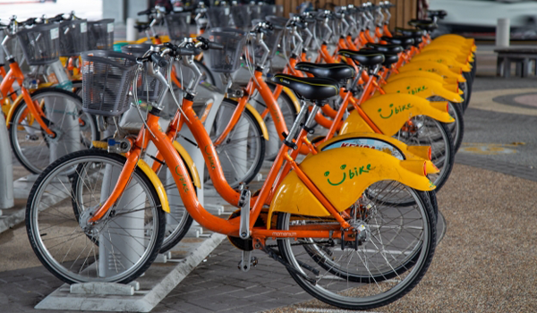 台北市内の便利な移動手段として注目されているのがシェアサイクル「Youbike」です。駅前や観光地など様々な場所に設置されており、短距離の移動に向いています。専用アプリをインストールして、アカウントを作成、悠遊卡などの交通系ICカードと紐づければ、カードを自転車のハンドル部にあるパネルにかざすだけで利用できます。